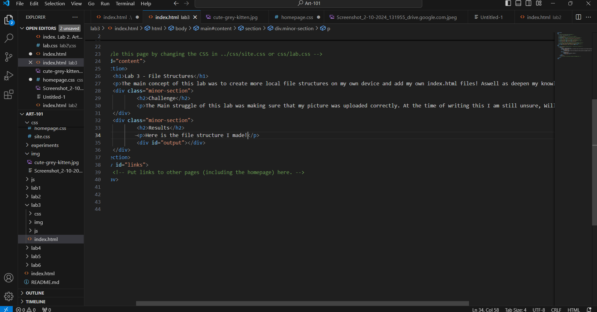 The main concept of this lab was to create more local file structures on my own device and add my own index.html files! Aswell as deepen my knowlege on file structures